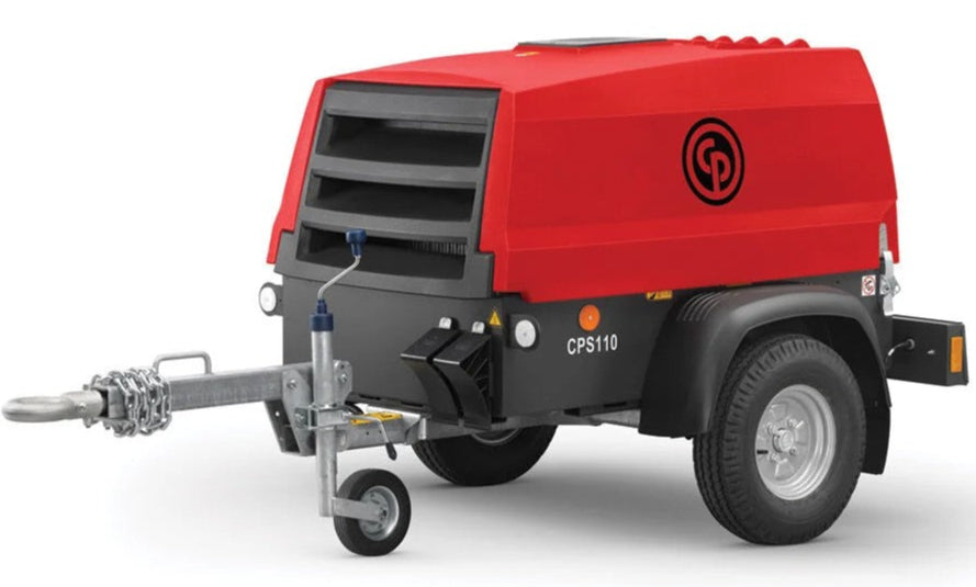 The Chicago Pneumatic CPS110 is a rugged, tow-behind portable air compressor designed for demanding jobs that require reliable performance and mobility. With a Kubota D902 Tier 4 Final diesel engine, this unit delivers 110 CFM at 100 PSI, making it ideal for powering pneumatic tools in construction, road maintenance, mining, and other heavy-duty applications.